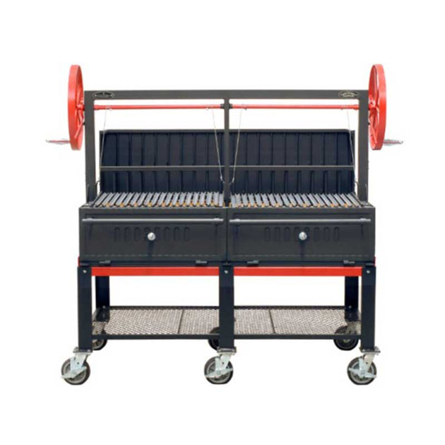Sunterra 60″ Argentine Grill with Rear Brasero Cart – Heavy-Duty Outdoor Wood & Charcoal BBQ (ARG-60DSPLBRBCRT)