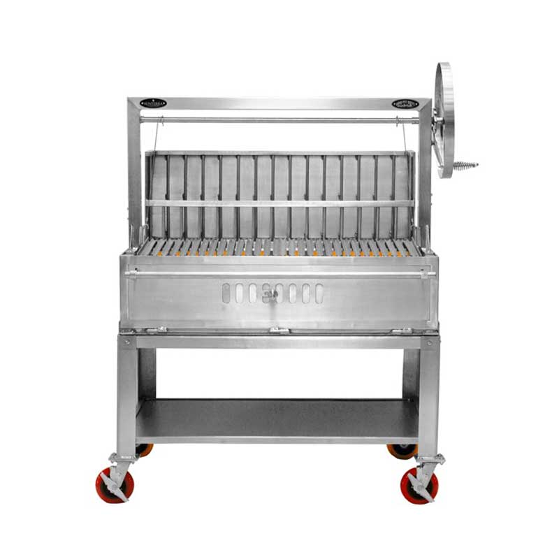 Bring authentic Argentine grilling to your backyard or professional outdoor kitchen with the Sunterra 48″ Argentine Stainless Steel Grill with Rear Brasero Cart (SS ARG-48DSIBRBCRT).