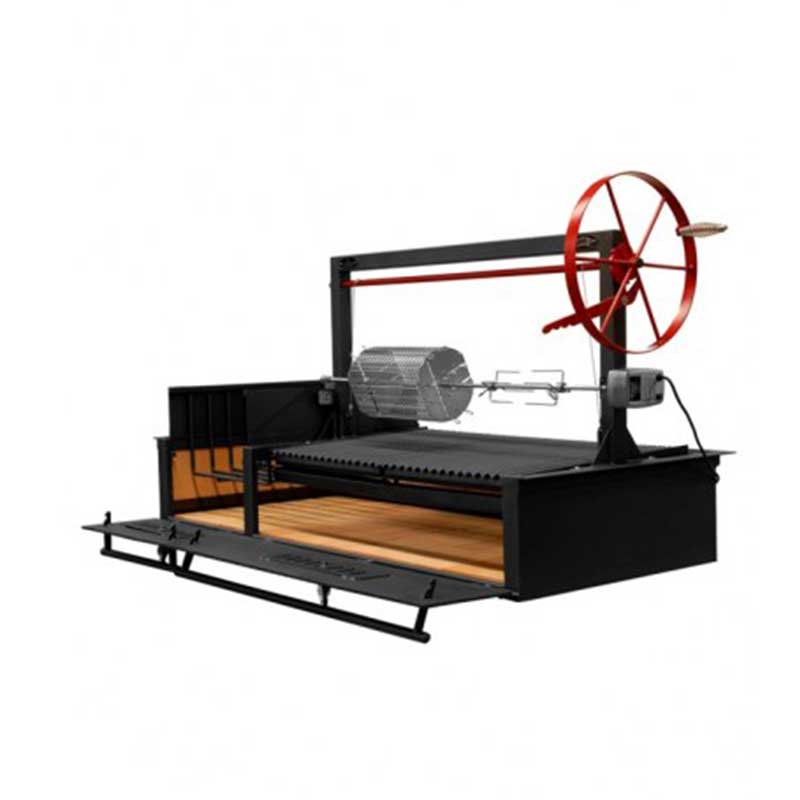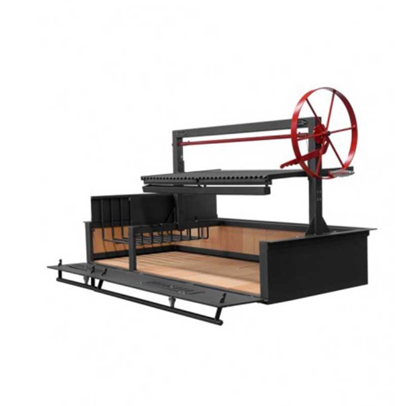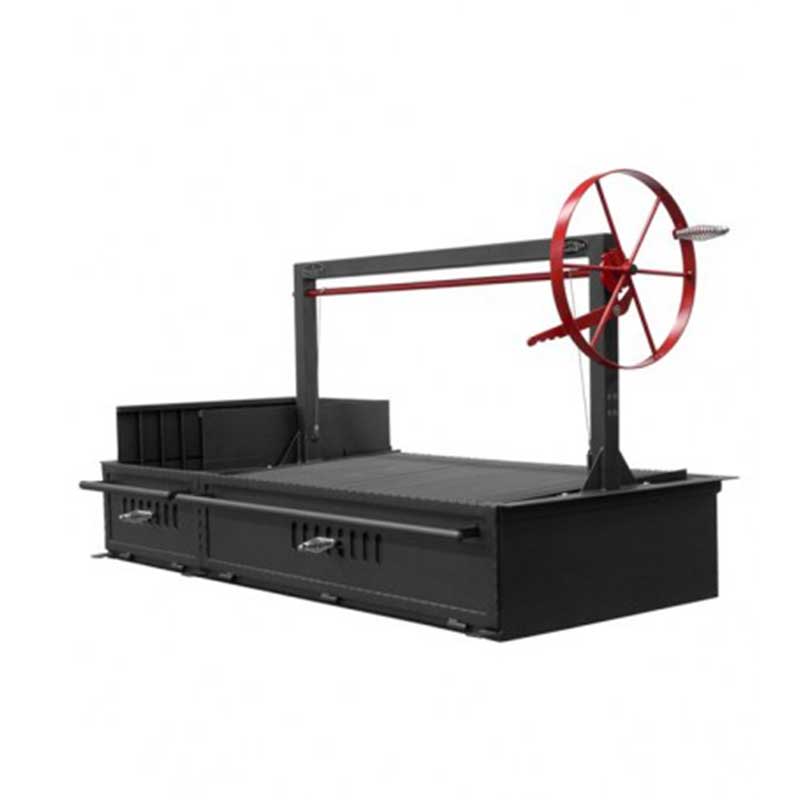 - Flywheel Lifting System – Smoothly raises and lowers grates via stainless steel aircraft cable.