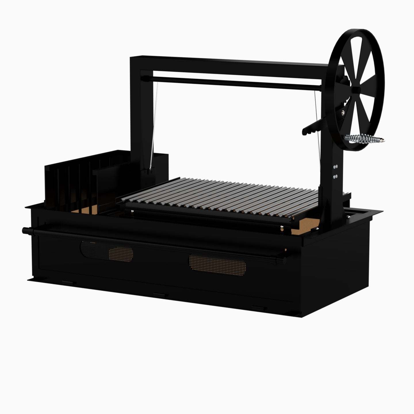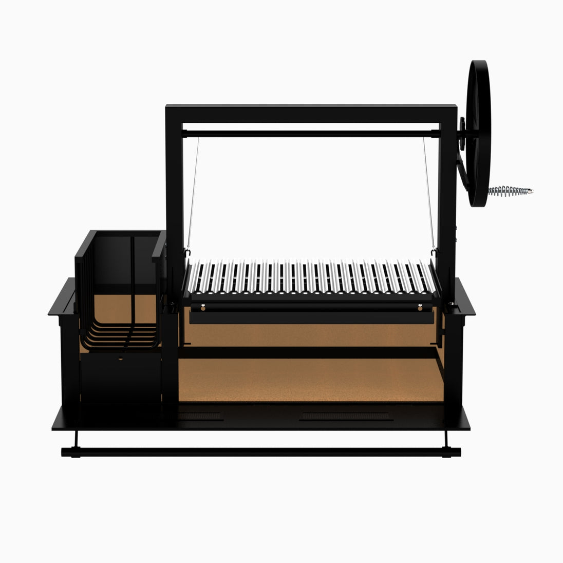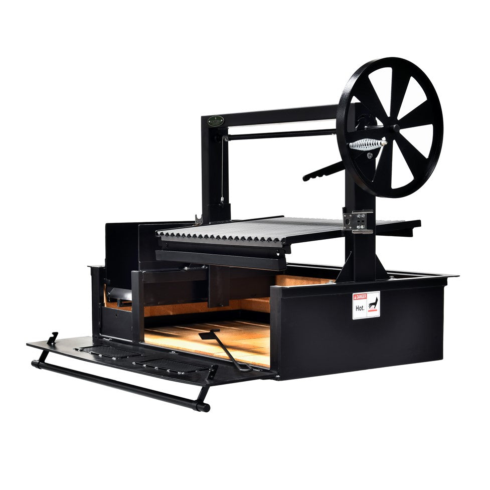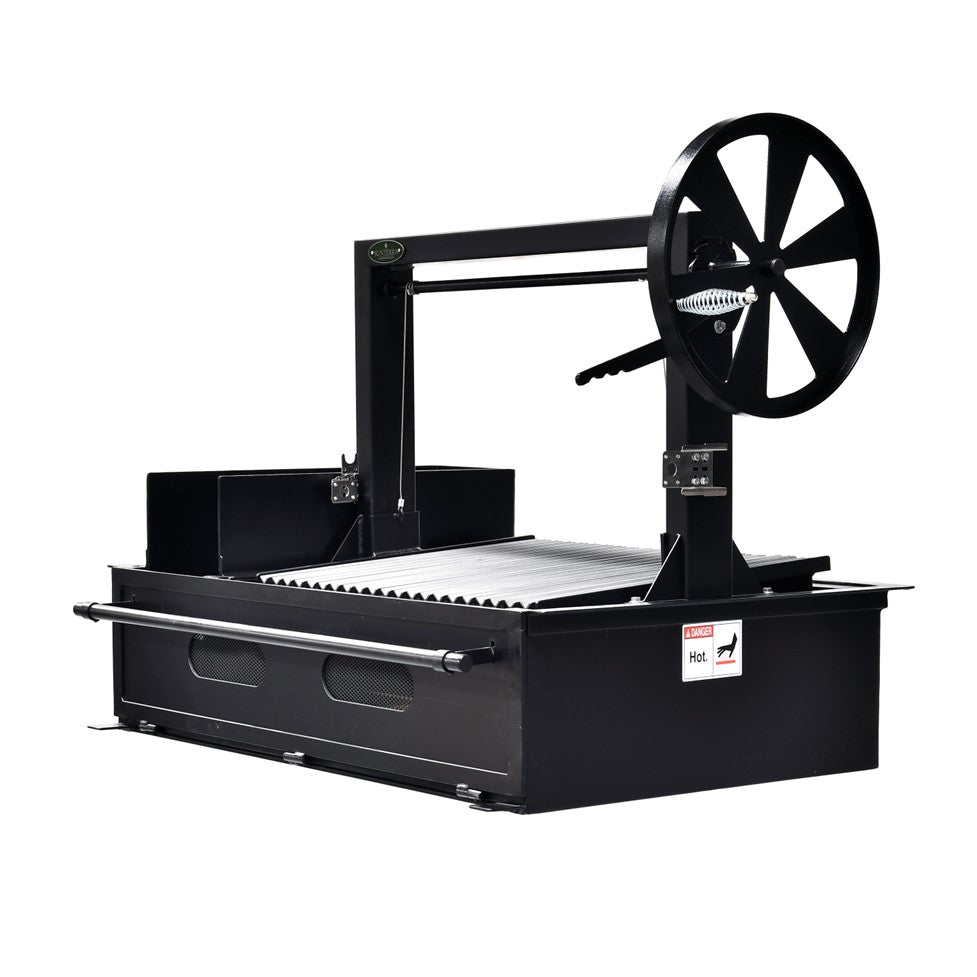 The adjustable V-channel grate system and flywheel lift mechanism give you total control over your cooking height — essential for true Argentine-style grilling.