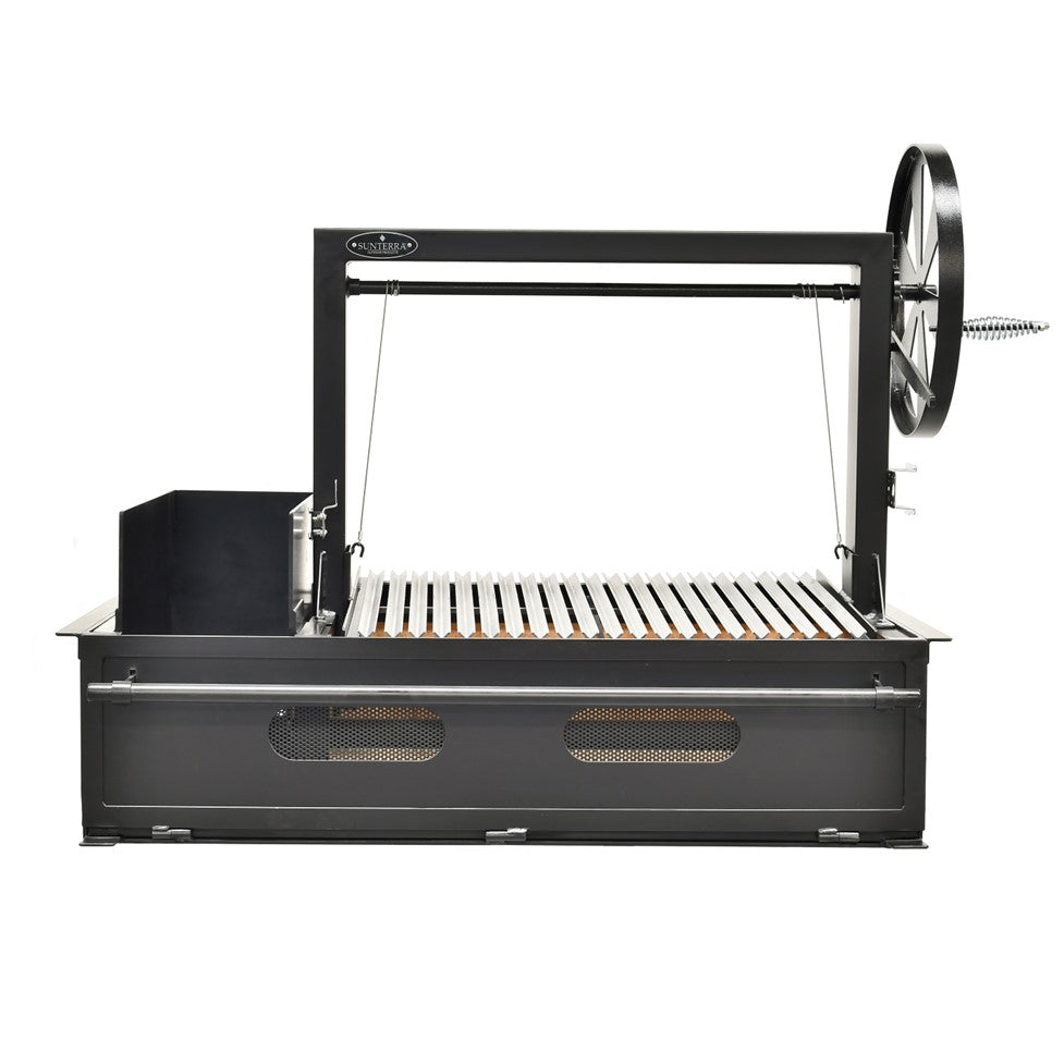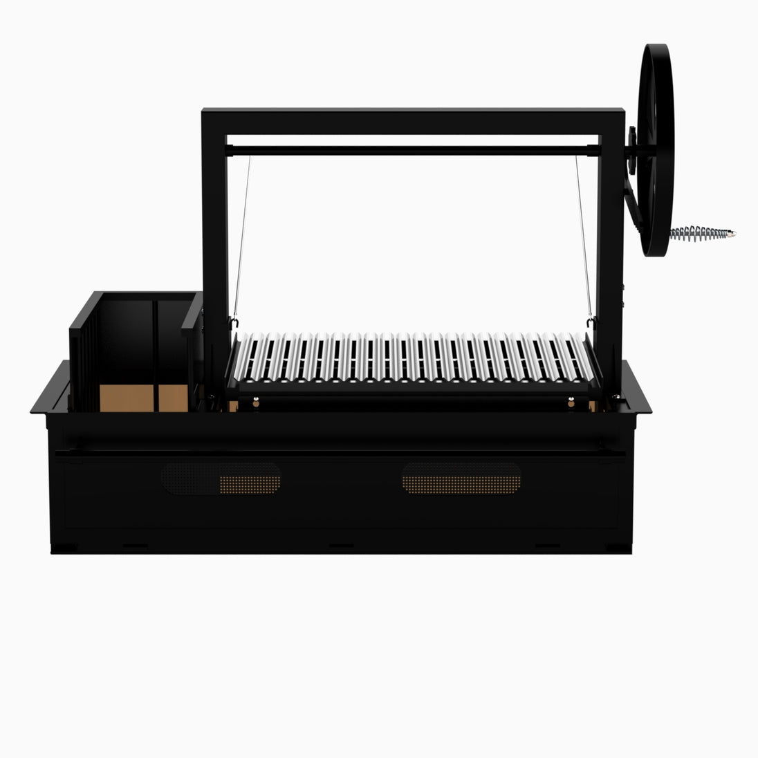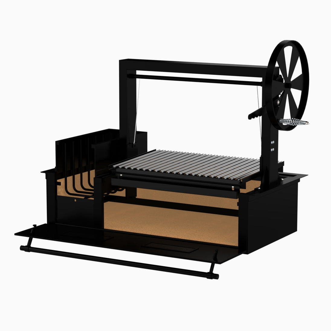 The adjustable V-channel grate system and flywheel lift mechanism give you total control over your cooking height — essential for true Argentine-style grilling.