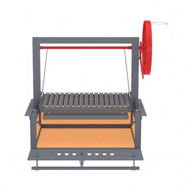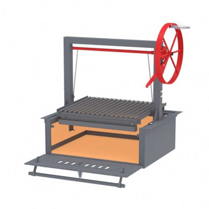 Handcrafted from heavy-gauge 3/16″ steel with insulated firebrick walls, this grill delivers superior heat retention and authentic wood-fired cooking. The signature flywheel system allows you to raise and lower the grill grate with precision, giving you full control over temperature and cooking speed.