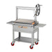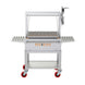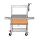 Engineered for performance and convenience, the stainless steel V-channel grates direct fats and juices away from flare-ups, while the cool-touch handles, removable shelves, and built-in drip tray make operation and cleanup simple. Mounted on a durable stainless steel cart with HD casters and 6″ red tires, it’s both rugged and mobile — ready for backyard parties or professional-grade outdoor kitchens.