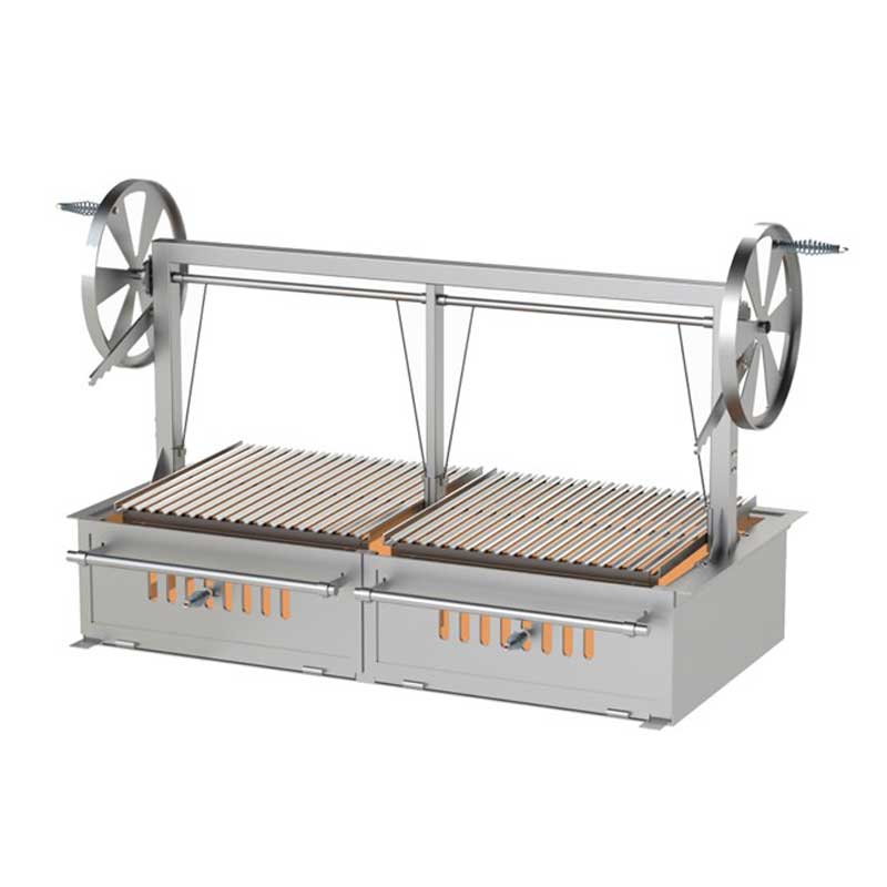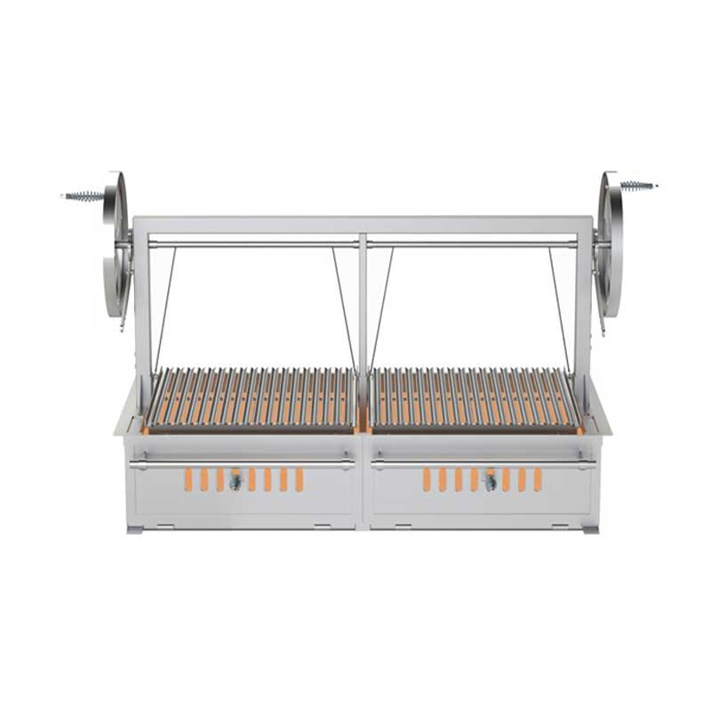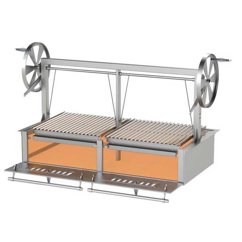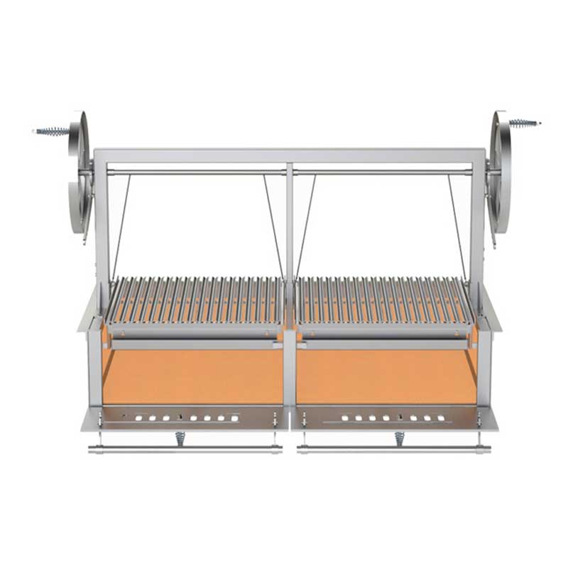 - Flywheel Control System: Smooth six-fan flywheel raises and lowers the grates with stainless aircraft cable for perfect heat management.